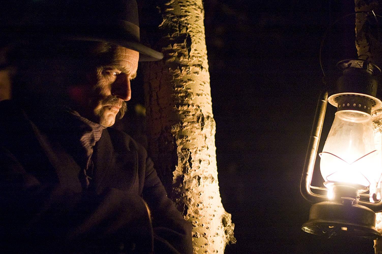 《刺殺傑西》最令人印象深刻的,莫過是埋伏在樹林間的盜賊,於漆黑的深夜裡劫持火車的橋段。「當你面對這種情境,第一個浮現在腦海的,便是『如何照亮場景』的技術挑戰。」Roger Deakins說。