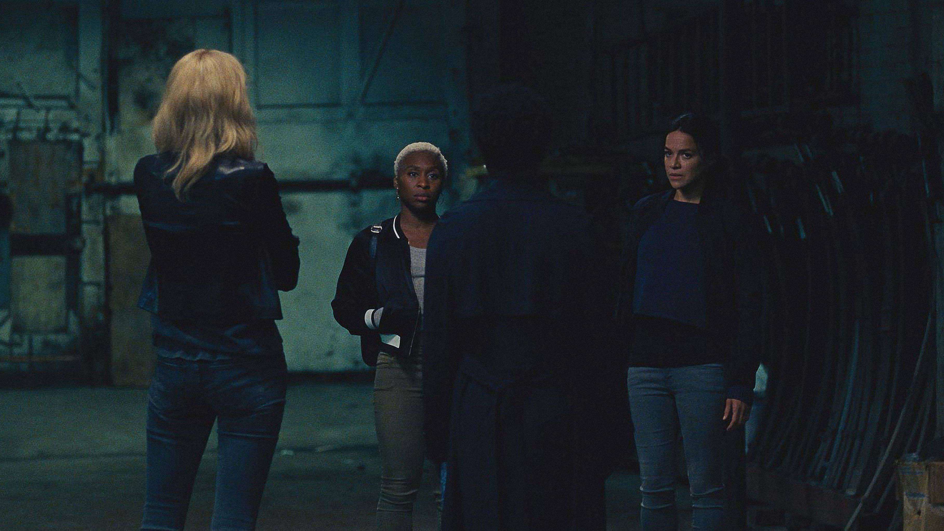 呈現寡婦們計畫搶案的倉庫時,為加強環境髒亂的樣貌,拍攝時,Bobbitt以螢光燈、日光燈及鎢絲燈,進行現場打光,讓場景呈現有深淺差異的綠色調;後製時,Poole則加強藍色及橘色的比重,替人物增添一些亮度及暖色調,與場景的綠色調進行區隔,讓畫面產生更多層次,展現人物身處混亂及無奈的處境。