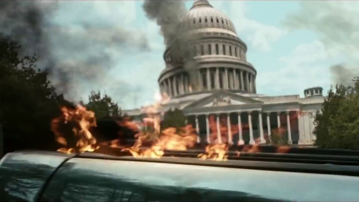 不過,劇組拍攝電影開頭的華盛頓特區時,因為沒有讓綠幕跟周遭的樹林隔開,使得背景無法順利合成「美國國會大廈」,必須替換成純電腦動畫環境。為此,團隊實地拍攝數千張照片,重建「美國國會大廈」,並將共計1800幀的畫面,逐格進行去背、追蹤,以繪景技術(Matte Painting)重新呈現背景環境。