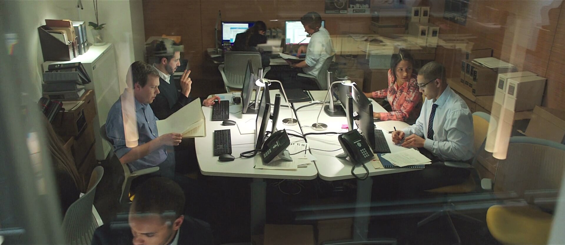 片中有兩棟政治立場不同的公司,其中會議室的設計,就讓Matthew Davies在空間、建材與室內設計上,必須做出細膩的差異。