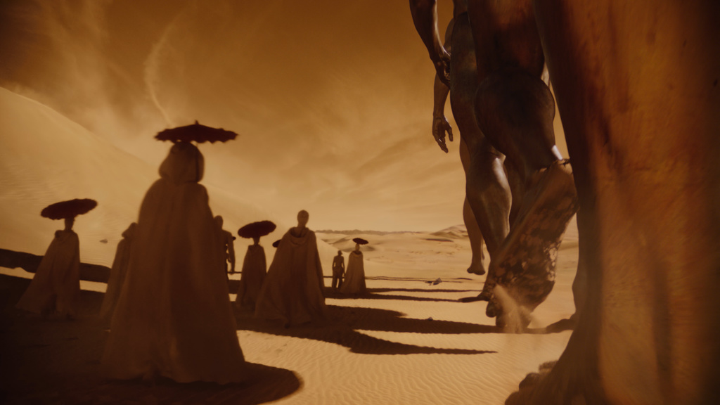 7個時空設計諸多自然環境,如:「Flowing Flame」中的沙漠場景,除行走的信徒於棚內拍攝外,更以3D遮罩繪景技術(Matte Painting),打造具金屬質地的巨人,以及漫天黃沙的荒漠。特效總監Rod Norman說:「這幫助我們,找到整個片段的色彩與調性。」