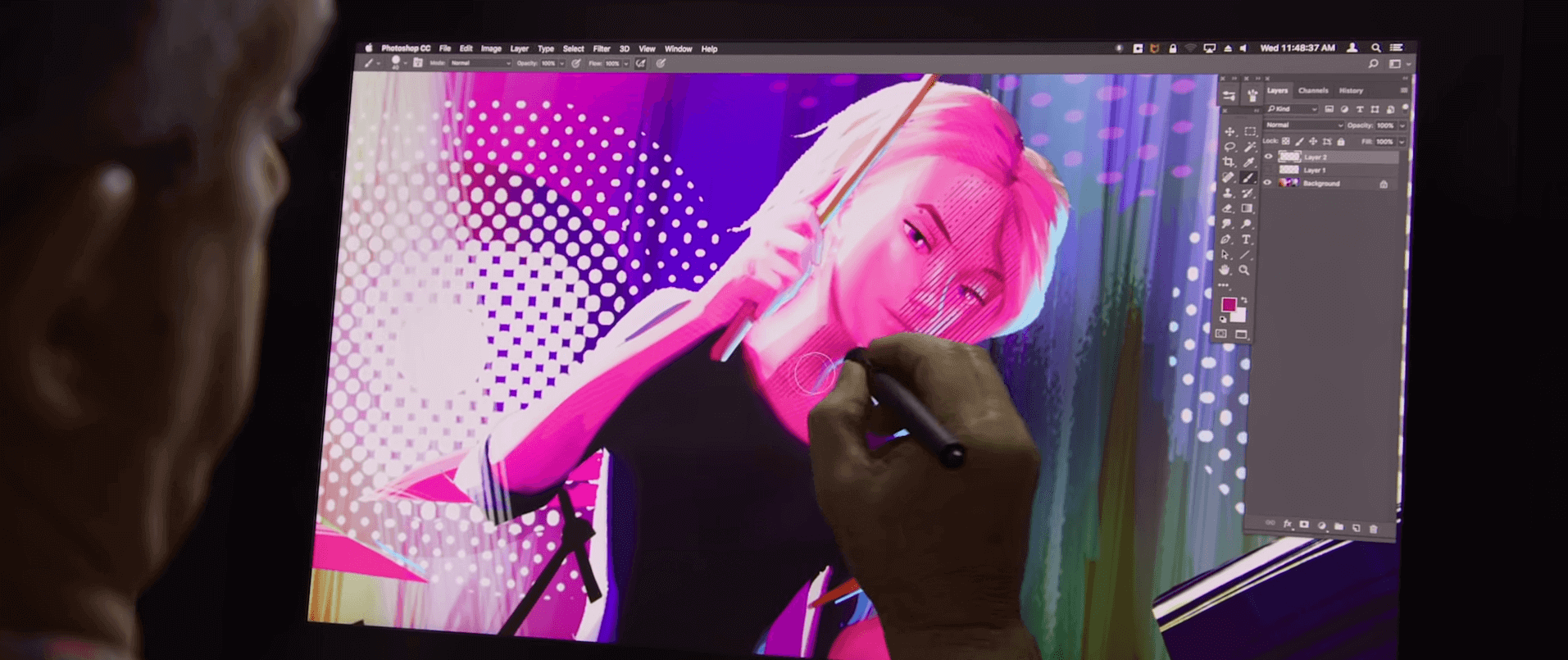 《蜘蛛人:新宇宙》裡的每一幀,耗費的製作時間是典型CG動畫的四倍。Justin Thompson說:「我們的目標,是打破一切都精準、逼真、完美的傳統CG規則。我們希望打造出,讓人們能確切注意到,藝術家為每個畫面做了哪些選擇的世界。」