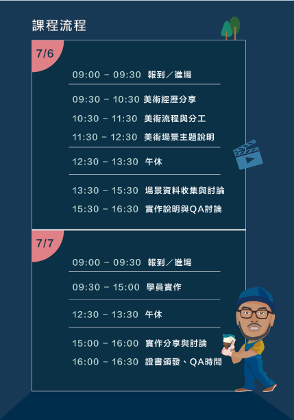 (7/6 場景資料收集,學員們可以自行攜帶筆電,方便與老師討論)