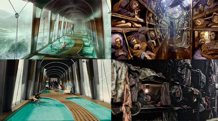 居住在列車前區的人民,不但錦衣玉食,還能享受各式娛樂,如水族館、桑拿室、舞廳、游泳池等。幾乎每節車廂都有大片窗戶,讓富人們欣賞戶外壯闊的雪景。