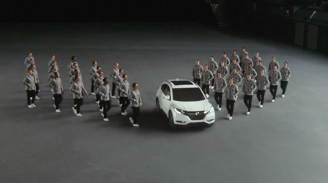 「HR-V車款的設計理念,是與人們的生活完美『同步』。」執行創意總監Paul Jordan說。因此,Kim Gehrig參考日本體大學生的「集團行動」花式步伐(Shuudan Koudou),找來舞蹈指導Supple Nam,設計精準舞步、編排交叉隊形。導演說:「我喜歡舞步造就的紀律、奇觀以及幽默感。」