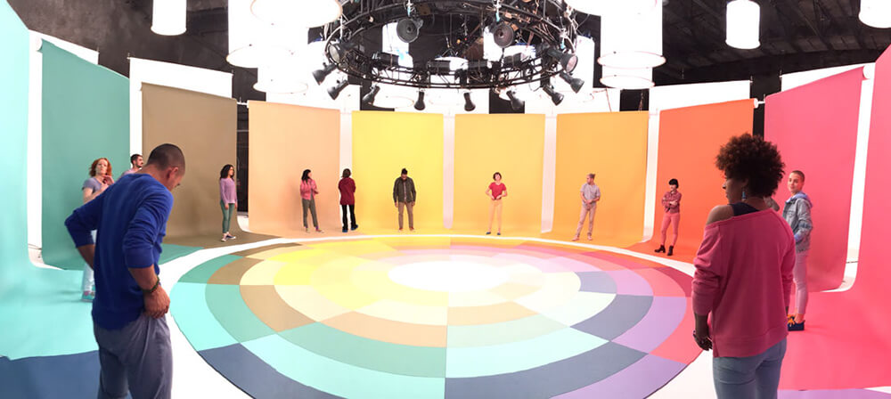 拍攝時,再依模型比例創造實景,攝影指導Andre Chemetoff將Alexa攝影機,置於片場中心運用裝置「定點旋轉」,捕捉演員跳耀的瞬間,並且加入閃燈(Flash),映照於人物產生真實光影效果,再由現場特效團隊確認、融合素材進3D場景模型中。