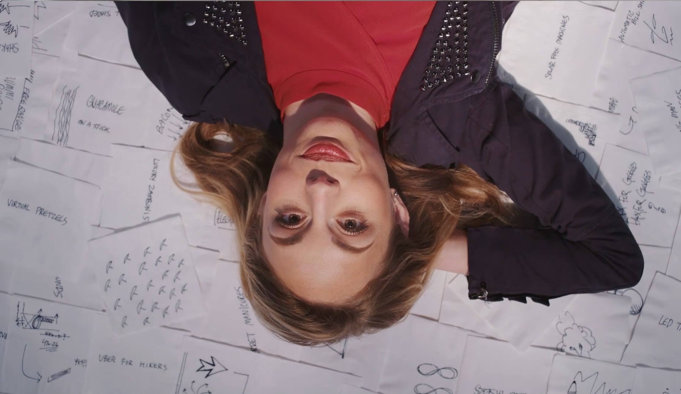 一名女子端坐在書桌前,腦中閃過千百種念頭,點子像老式卡通般,點亮頭頂的燈光;男子於打字機前思索,鏡頭緩緩拉近,移動至背景佈滿整齊排列、貼滿整牆的便條小紙卡;另一支影片,攝影機從高空中拍攝,張張寫滿註記的餐巾紙,如鮮花般飄散在女子身上。