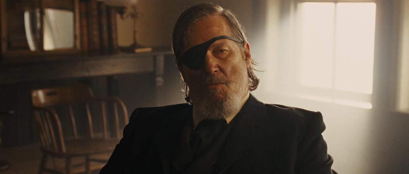 Roger Deakins說:「這是Coen brothers做的一個相當精巧的選擇,從Mattie的觀點介紹這個角色。」劇組於每扇窗外,裝設龐大的舞台聚光燈,仿造日照光線效果,斜入房間內;但由於光線仍是背光照射角色Rooster,使得他的臉龐、身形仍半數處於陰影,顯示人物介於善惡間的曖昧性。