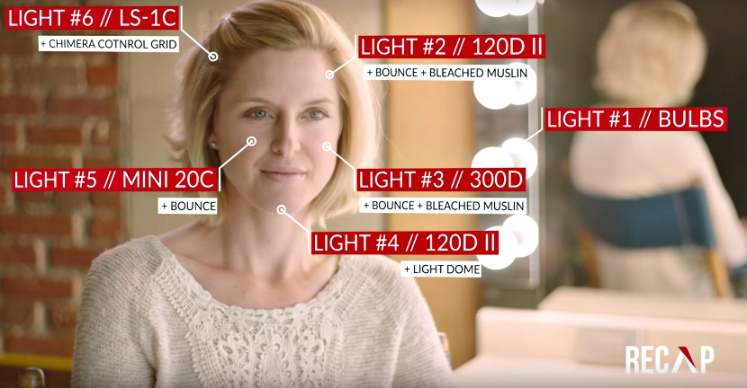Salmon 使用 120D II、300D 及 Mini 20C 等燈具進行補光,修飾臉部細紋,並利用燈具LS-1C將人物主體與背景分離,使畫面呈現更顯明亮、柔和。他強調,讓演員看起來更年輕的重點,在於將燈光集中在臉上有皺紋的地方,就像是化妝的「遮瑕」一樣,才能柔化肌膚,達到減齡的效果。