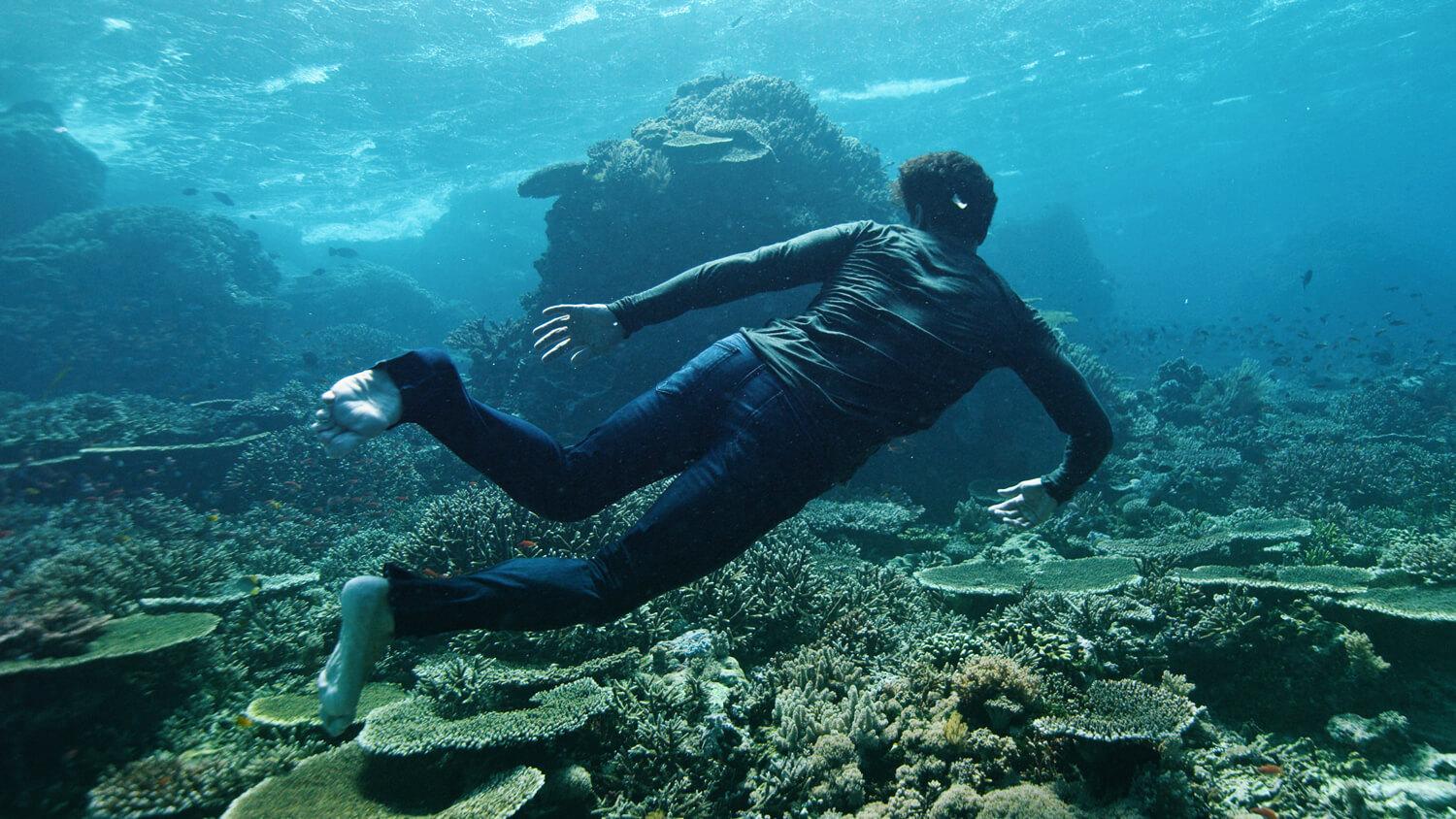 長時間的海中拍攝,須耗費大量體能,劇組找來了潛水專家Michael Board擔任主角,每次下海他都必須屏氣長達3分鐘,與各式魚類進行多次互動,更與劇組人員自由潛水了250次,總共在海中花費約35個小時,反覆嘗試、試圖呈現最完美的海洋世界。