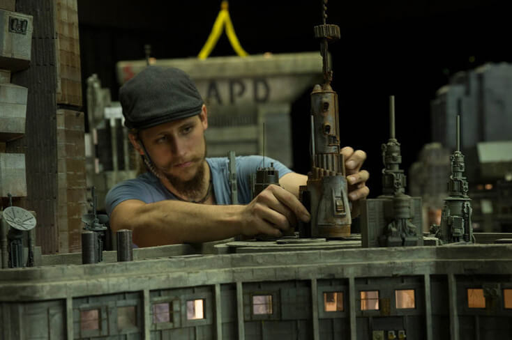 模型師們打造《銀翼殺手2049》中的主場景洛杉磯市時,混合黑、灰等低飽和度的色彩,細緻粉刷建築色澤,調整窗戶、逃生梯、天線等細節。牆上的塗鴉同樣出自模型師之手,因過程中要極小心以免破壞模型,他們甚至戲稱繪製塗鴉的時刻為「危機時刻」。