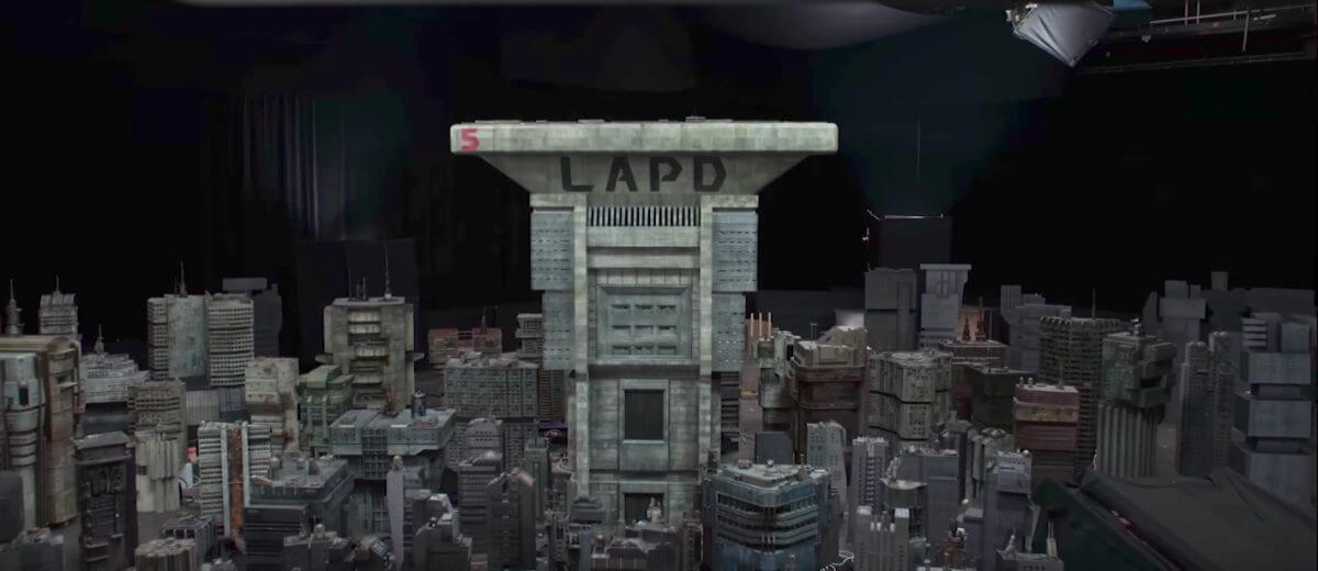 模型師會再依不同場景,量身設定其特色。例如:他們在洛杉磯警局的模型加裝光纖,令其彷彿微微從內部透出窗光;華萊士企業大樓則由鋼架構成,再鋪上如岩石般藍灰的色調,讓建築物更顯得莊嚴肅穆;垃圾掩埋場則有大量金屬散落其中,團隊需細膩繪製出生鏽的廢墟、斑駁的危樓。