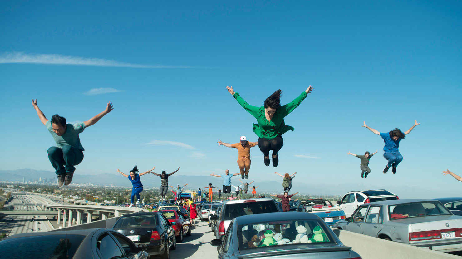 雖然關於這個場景有很多計畫,但Moore希望可以讓演員留下即興發揮的空間,或許可以出現更驚喜的畫面。為了爭取時間拍攝,許多人甚至直接在高速公路住了一晚。Moore補充說明:「最重要的是觀眾會明白這些人是真正的夢想家,不只是訓練有素的舞者,而是真實的人。」