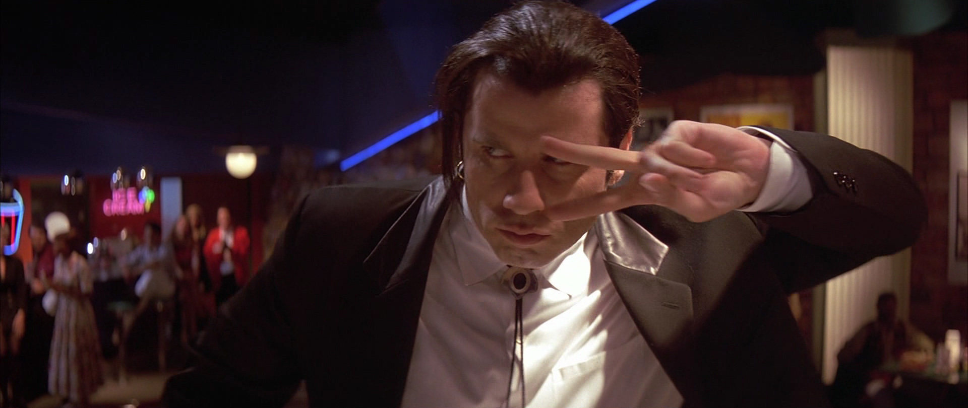 導演昆汀塔倫提諾 (Quentin Tarantino) 的作品,以諷刺題材及暴力美學聞名,極具黑色電影風格。當他因《黑色追緝令》(Pulp Fiction) 接受採訪時,被問到是否認為電影中的暴力,會間接影響真實社會中的暴力時,他的回答為: