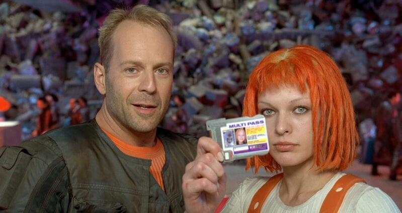 Luc Besson的科幻大作《第五元素》裡頭,女主角的髮型、 男女主角服飾皆為亮橘色系。該片的服裝指導Jean Paul Gaultier運用90年代元素再翻轉創新,以橘色凸顯出人物活潑、鮮明的個性。