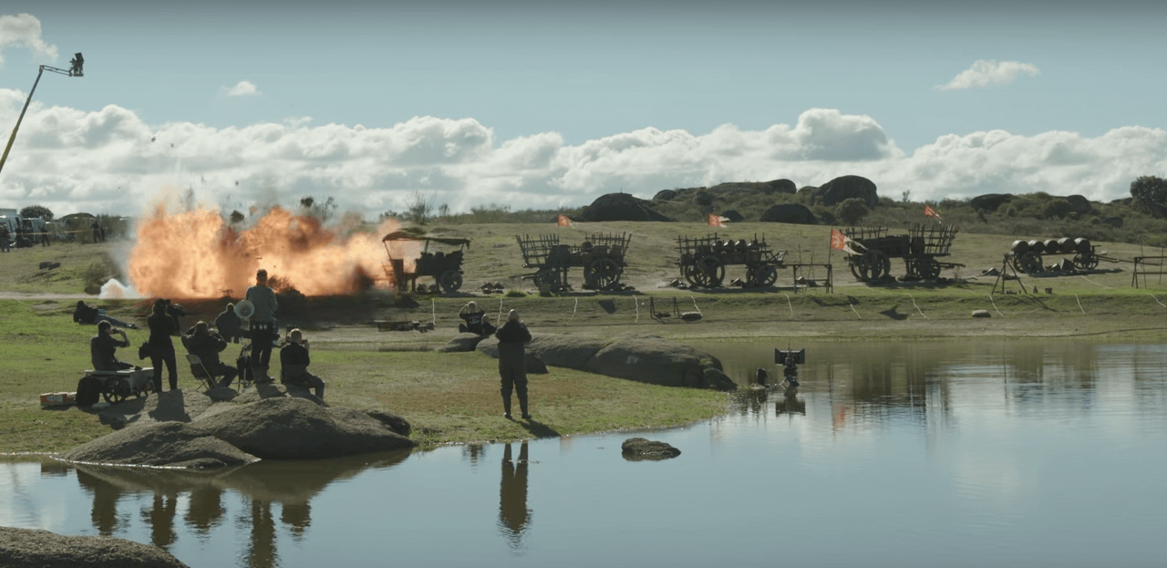 劇組必須真實呈現「如果龍真的噴了巨火」的實際環境,因此20個特效演員準備好站在中間,等著接受火焰洗禮,演員們分享除了保護措施之外,秘訣是停住呼吸避免被煙嗆到,且全程必須保持冷靜,最終順利成就了這場戰役史詩般的一幕。