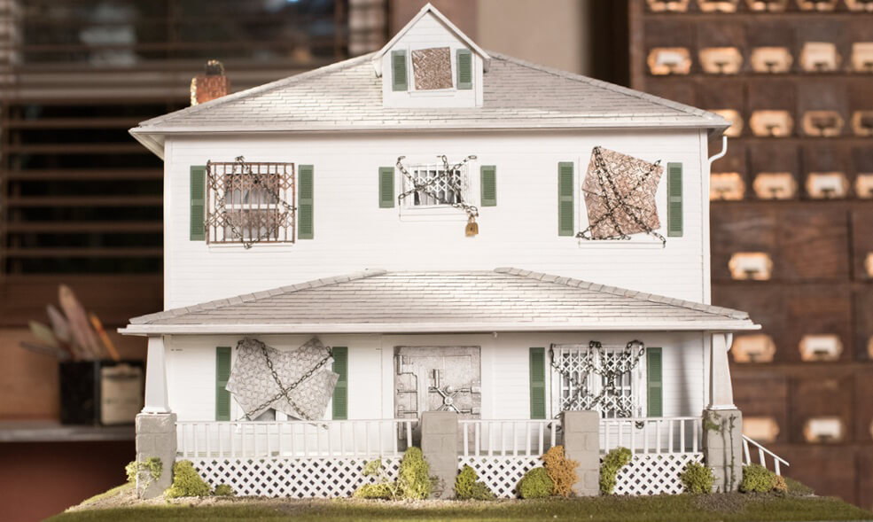 曾參與《黑暗騎士》、《全面啟動》的微型模型設計師Steve Newburn,運用菩提木材、顏色卡紙、塑膠、隔熱泡綿等素材,建造「縮小版」的房屋場景。片頭出現的模型屋,便完全仿造Graham家的原貌,Steve Newburn拍攝上百張劇組搭建的場景照,盡可能原封不動地重現,模型裡的每個部份,包含牆壁、屋頂等,大多也可拆卸,方便攝影機拍攝。