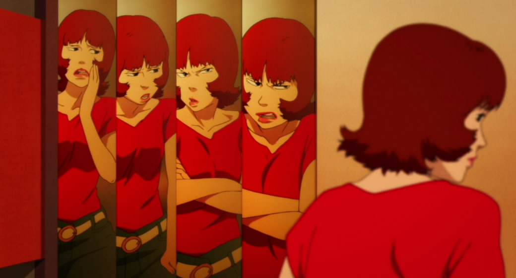 又因為今敏指定未麻房間的燈光必須是「白熾黃燈」,藍色及綠色都比較不容易在這樣的色調下顯示出來,而紅色作為藍色的實際對比色以及片名的對比,都能帶給觀眾不安的印象。