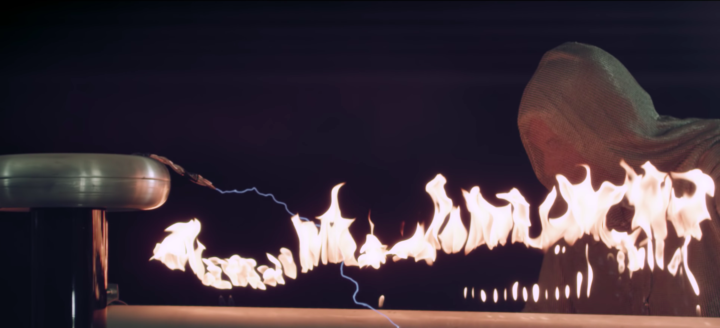 片中皆由Nigel Stanford親自演出,除跳躍接近線圈的片段,是由現場音控師Michael Provencher,穿著高達30公斤重的法拉第服(Faraday Suit)拍攝而成,該服裝既能導引電弧,也達到防電效果,卻也使跳躍動作難度倍增。
