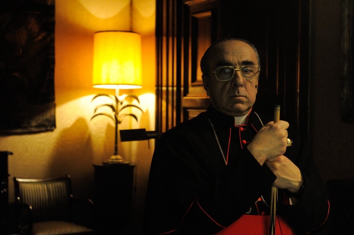 除了與陳設燈光的關係外,Luca Bigazzi也強調佈景的顏色,也多半選擇飽和度低、較柔和的色調為主,鏡頭裡才能凸顯要角教宗的白衣、其身邊的顧問樞機的紅衣,表現角色在劇情中的氣勢與重要性。