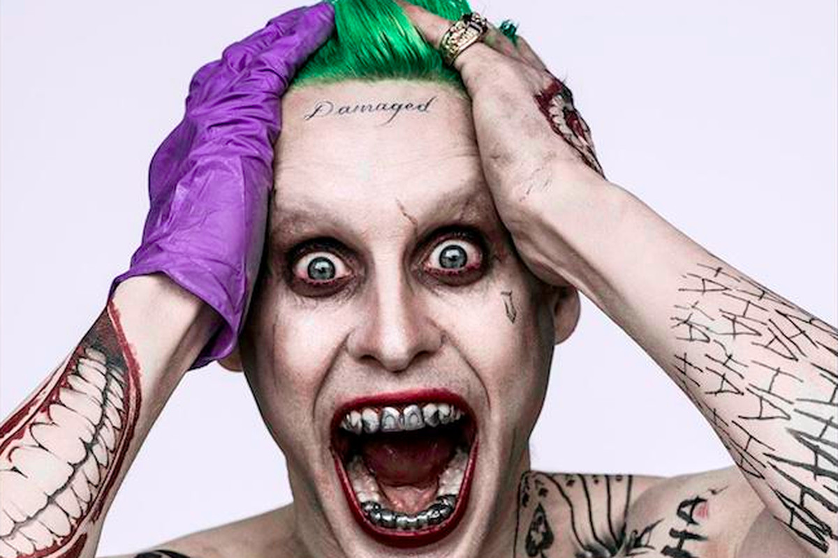 而小丑滿嘴銀牙與額頭上的「Damaged」刺青,也是導演 David Ayer 的想法,他表示:「我的想像是,蝙蝠俠因為小丑殺了Jason Todd(羅賓)而打爛他原本的牙,將他關進阿卡漢精神病院,後來他用『Damaged』字樣的刺青向蝙蝠俠傳達『我本來很完美,是你毀了我的臉』的訊息。」